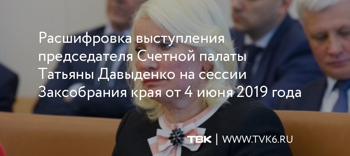 Расшифровка выступления председателя Счетной палаты Татьяны Давыденко на сессии Заксобрания края от 4 июня 2019 года
