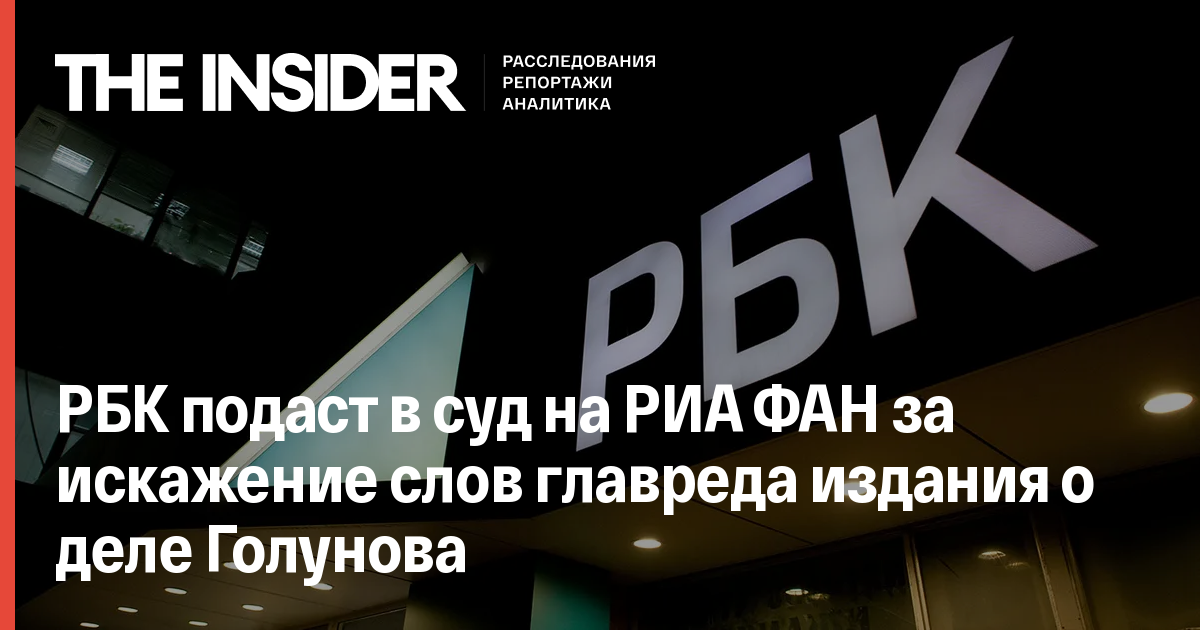 РБК подаст в суд на РИА ФАН за искажение слов главреда издания о деле Голунова