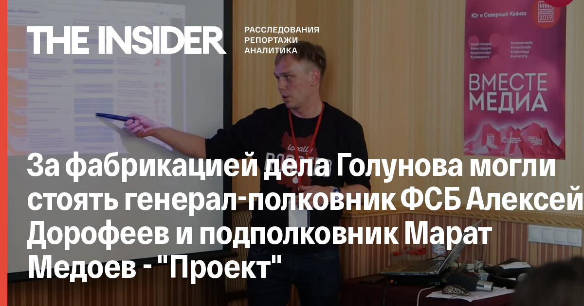Специальный корреспондент «Медузы» Иван Голунов готовил материал о главе управления ФСБ генерал-полковнике Алексее Дорофееве и его помощнике подполковнике Марате Медоеве. Об этом сообщает «Проект» со ссылкой на троих коллег журналиста.