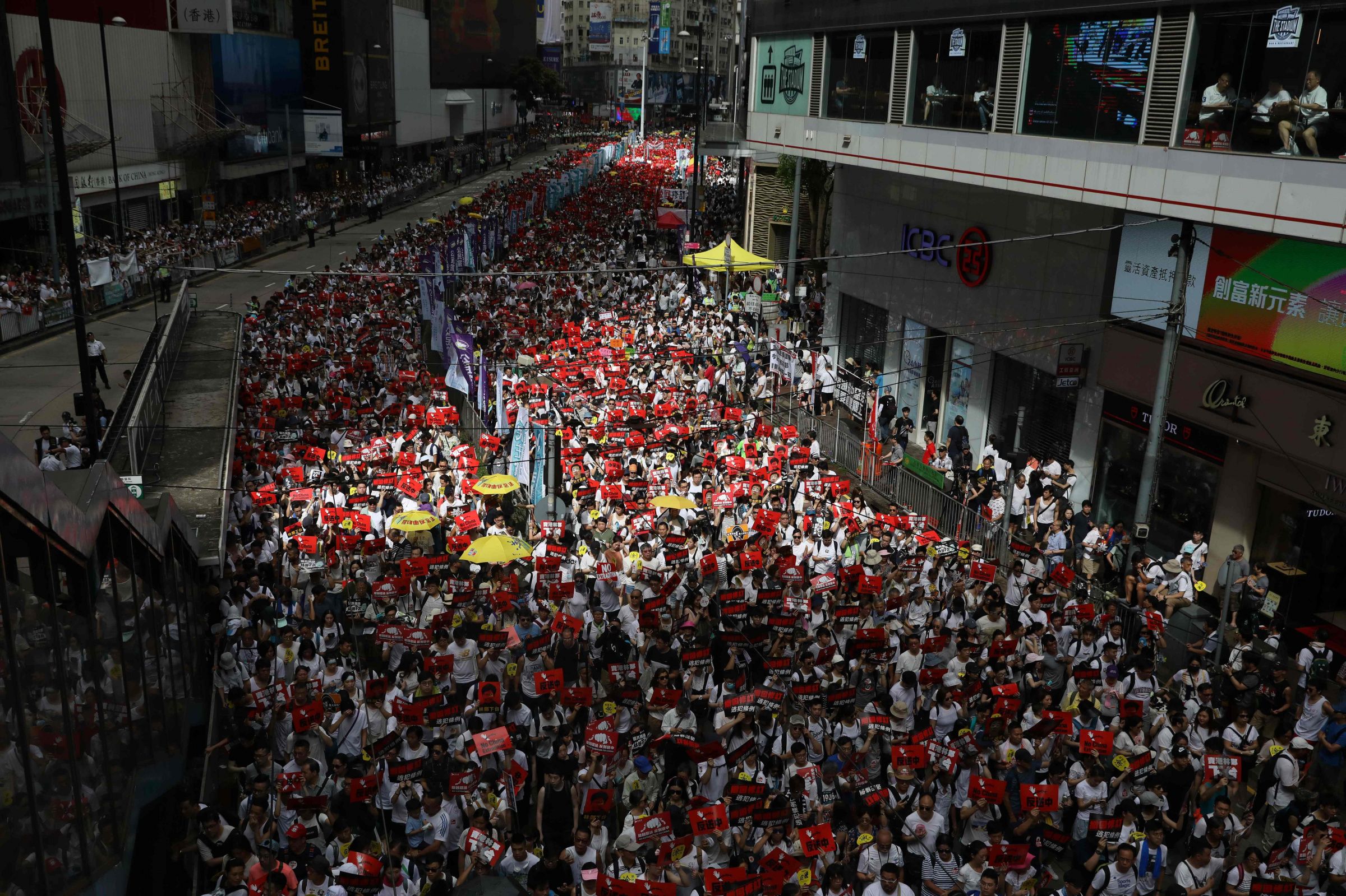 Власти Гонконга утверждают, что в демонстрации приняли участие не более 240 тысяч человек, но организаторы говорят об одном миллионе протестующих — это значит, что на улицы вышел каждый седьмой житель города.