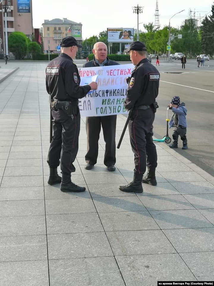 Серию одиночных пикетов в поддержку задержанного корреспондента ''Медузы'' Ивана Голунова провёл в Барнауле активист Виктор Рау. Об этом ''Сибирь.Реалии'' сообщил сам пикетчик.