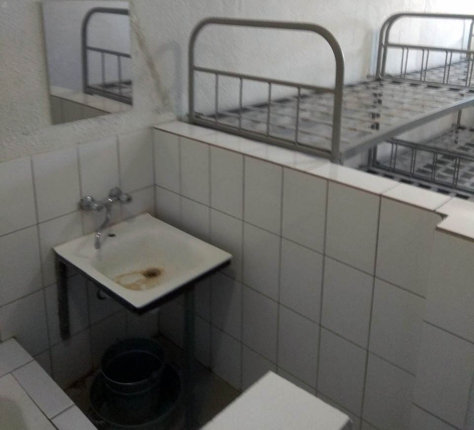 Камера, в которой находится Мия в миграционном центре в СахаровеФото: Алексей Сахнин Когда мы впятером заходим в камеру, в ней сразу становится тесно. Нигерийка видит людей с камерами и быстро прячется за перегородкой параши, накрывая голову платком. Но телевизионщики не обращают на это никакого внимания и без комментариев снимают все вокруг. Во время разговора с Мией они начинают «подснимать» помещение с разных ракурсов, беззастенчиво лезут к африканке, задают ей какие-то вопросы, тычут в нее микрофоном, пытаясь заставить выглянуть из-под платка и снять забившуюся в угол женщину прямо над писсуаром.