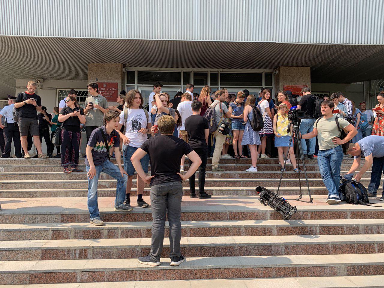 Журналисты у здания Никулинского суда, который 8 июня отправил Ивана Голунова под домашний арест. Фото: «Медиазона»
