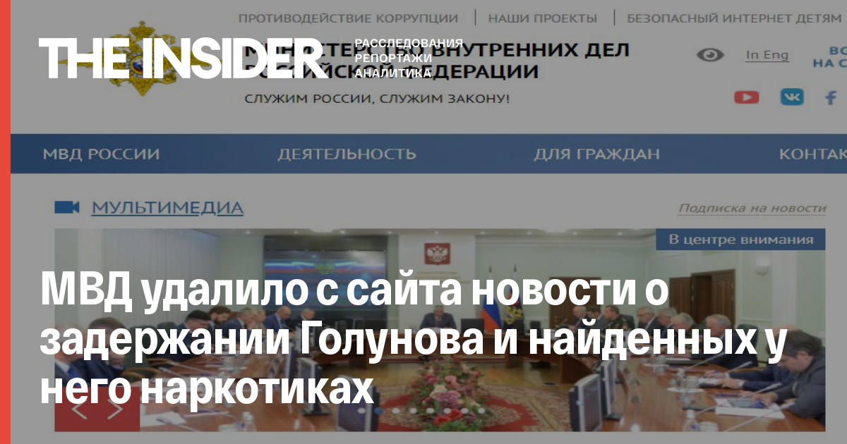 МВД удалило с сайта новости о задержании Голунова и найденных у него наркотиках