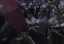 В акции у здания парламента Гонконга участвуют десятки тысяч людей. Полиция оттесняла демонстрантов, распыляя перцовый газ. В столкновениях пострадали более 10 человек. Митингующие кидали пластиковые бутылки, били полицейских зонтами и закрывались ими, когда их поливали водой из водомета.