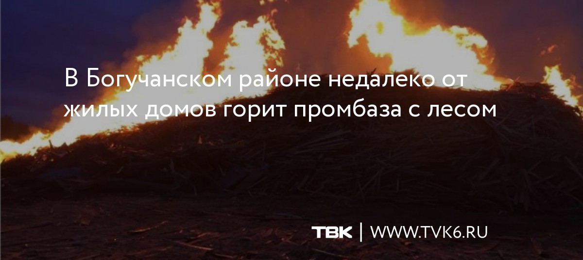 В Богучанском районе недалеко от жилых домов горит промбаза с лесом