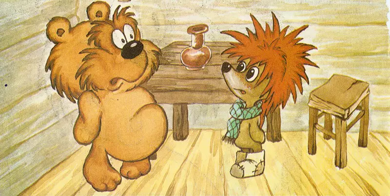Из сказок Сергея Козлова (1939–2010) известна в первую очередь великая «Ежик в тумане», но вообще это довольно обширный цикл небольших философских историй. Чаще всего сюжет в них таков: Ежик — самобытный философ и оригинальный учитель, вечно погруженный в себя — переживает очередное мистическое откровение. Дальше он делится этим откровением со своим другом Медвежонком. Медвежонок — существо более приземленное и практичное; чаще всего откровения он не разделяет. Или иногда все-таки разделяет. Порой из откровений рождаются загадочные квазирелигиозные ритуалы.