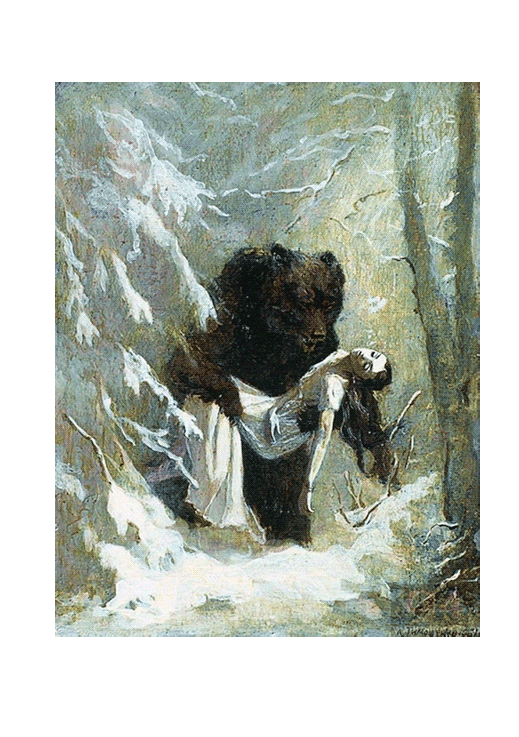 Безымянный медведь стал главным героем самого, наверное, известного ночного кошмара среди описанных в русской литературе. Сперва он гонится за Татьяной, затем хватает ее и уносит в шалаш, где собрались самые диковинные босхианские создания, включая ведьму с козьей бородой, полужуравля и полукота. И в самый неожиданный момент обретает дар речи и произносит кажущуюся на первый взгляд загадочной фразу: «Здесь мой кум».