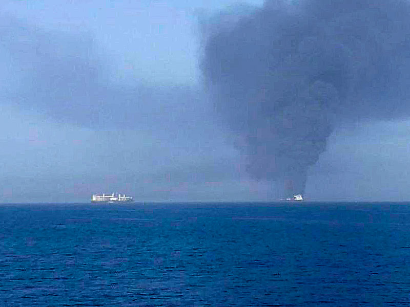 Начало пожара на танкере в Оманском заливе / twitter.com Всего с двух судов эвакуировали 44 человека. Иранские СМИ указывают, что в районе местонахождения судов были слышны звуки взрывов. Морские гавани Пакистана и Омана получили сигналы бедствия от экипажей подвергшихся атакам танкеров. По данным ряда СМИ, на танкеры была совершена торпедная атака, но официального подтверждения этой информации не было.
