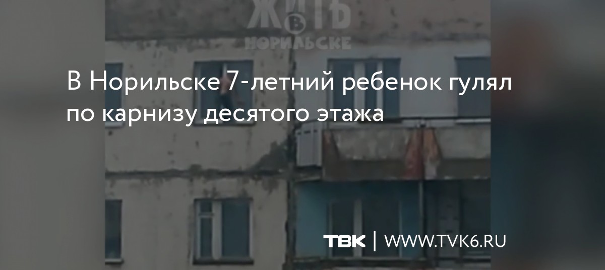 В Норильске 7-летний ребенок гулял по карнизу десятого этажа