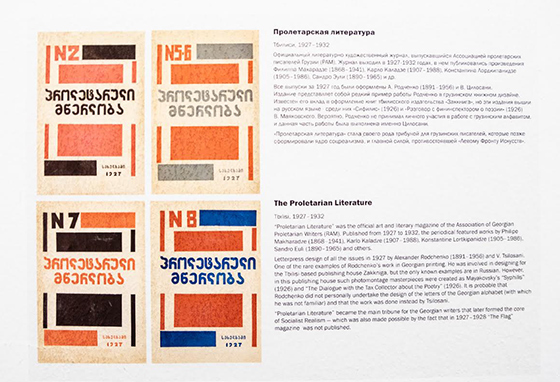 — Конечно, они связаны. Но если каталог — это иллюстрированная библиография книг, которые были изданы в 1920-е и подчинялись художественным законам своего времени, то выставка — часть большого проекта, куда входят чтение лекций, пропаганда книги, освещение грузинских 1920-х годов в разных выставочных пространствах. Например, часть коллекции мы показывали на выставке ««Грузинский авангард» (2016—2017) в Пушкинском музее. Большая выставка «Tiflis on My Mind», посвященная грузинскому алфавиту, была представлена в 2018 году в Германии, в музее Клингспур в Оффенбахе.