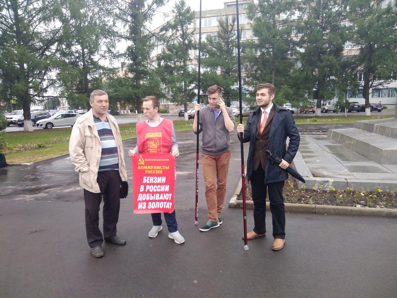 Члены и сторонники партии вышли к площади Ленина, чтобы задать вопрос “Бензин в России делают из золота?”