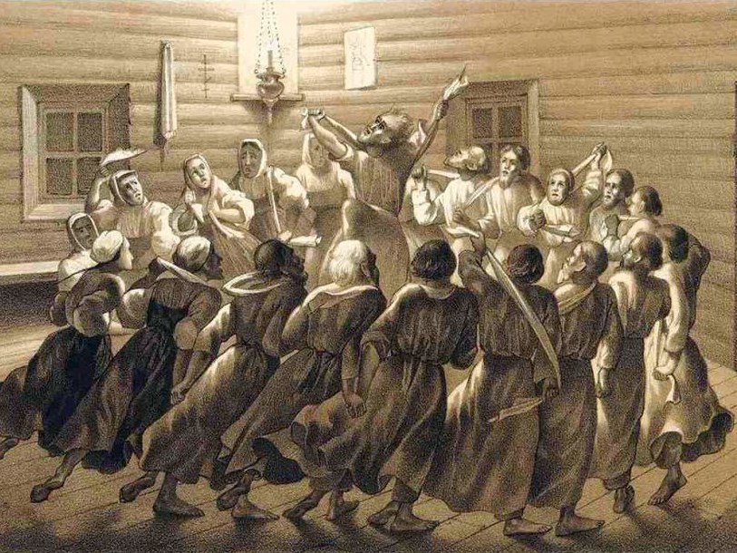 Радение хлыстов. Иллюстрация из книги В. Даля «Исследование о скопческой ереси», 1844 г.