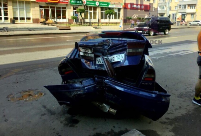 В центре Красноярска водитель устроил массовое ДТП, наехав на лужу