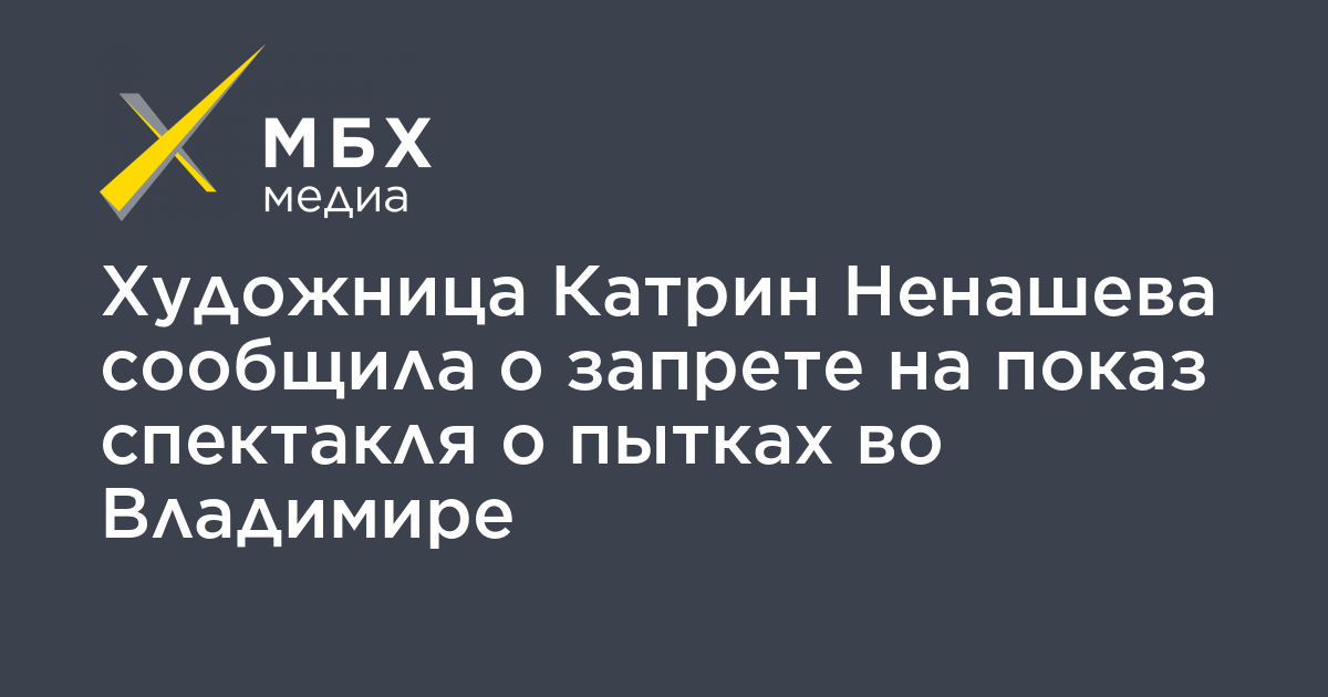 Власти Владимира запретили проводить показ иммерсивного спектакля о пытках «Груз 300». Об этом у себя в Facebook сообщила художница Катрин Ненашева.