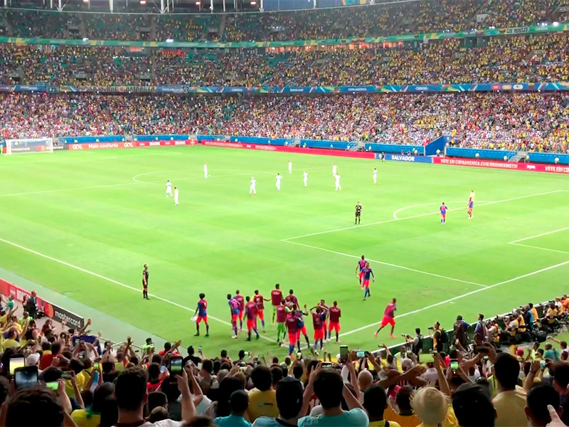 В бразильском городе в Салвадор на стадионе "Фонте-Нова" сборная Колумбии переиграла со счетом 2:0 команду Аргентины в матче первого тура группового этапа Кубка Америки по футболу. У победителей мячи забили Рохер Мартинес (71') и Дуван Сапата (86').