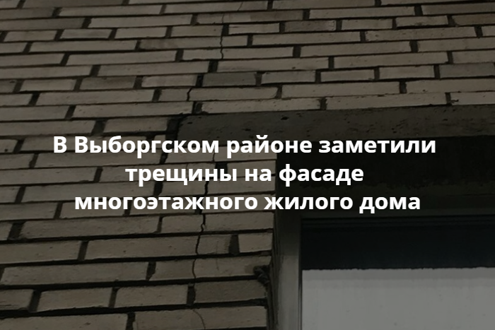 Жители Выборгского района Петербурга заметили трещины на фасаде жилого 9-этажного дома, расположенного на Муринском проспекте, 24. Фотографии второго корпуса здания разместили в социальных сетях.