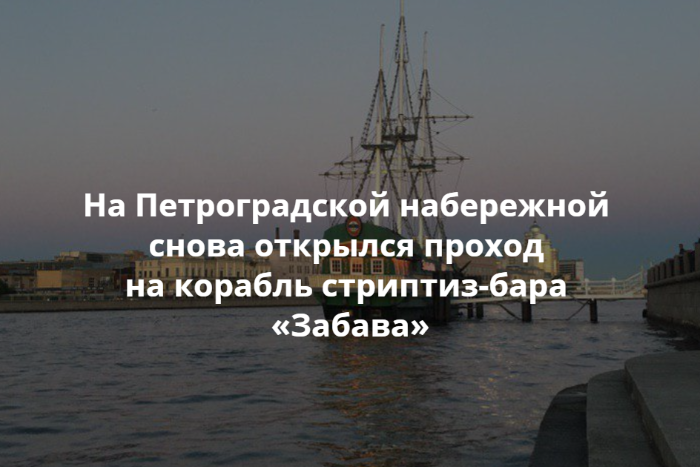 В Петербурге вновь открылся проход на корабль стриптиз-бара «Забава». В 2018 году суд признал швартовку судна незаконной