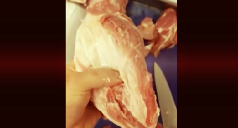 За кадром мужчина утверждает, что кусок мяса – это шея весом 4–5 кг. После разморозки этого мяса кусок якобы значительно уменьшается в размерах. «Она вся в геле. Половина жира, жрать невозможно», – говорит голос за кадром. По мнению автора видео, за компанией стоит премьер Дмитрий Медведев.