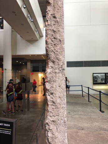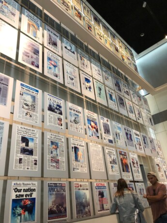 Выставка-мемориал про 11 сентября 2001 года настолько живая, что совсем неудивительно видеть на ней салфетки для посетителей. На стенде с первыми страницами газет со всего мира про 9/11 есть и российские. Выбор неочевидный: «Известия» и «Вечерний Петербург».