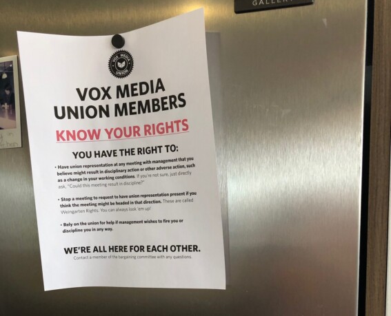 Например, мы побывали в местном офисе Vox Media, которое объединяет The Verge, Polygon, SB Nation, Vox, Recode и ещё несколько изданий. Если что, Vox — это главный «объясняльщик» в мире СМИ (если вы не знакомы с ними, посмотрите ролик про войну в Сирии). На следующий день после нашего визита сотрудники Vox Media начали забастовку. Нет, мы с этим никак не связаны.