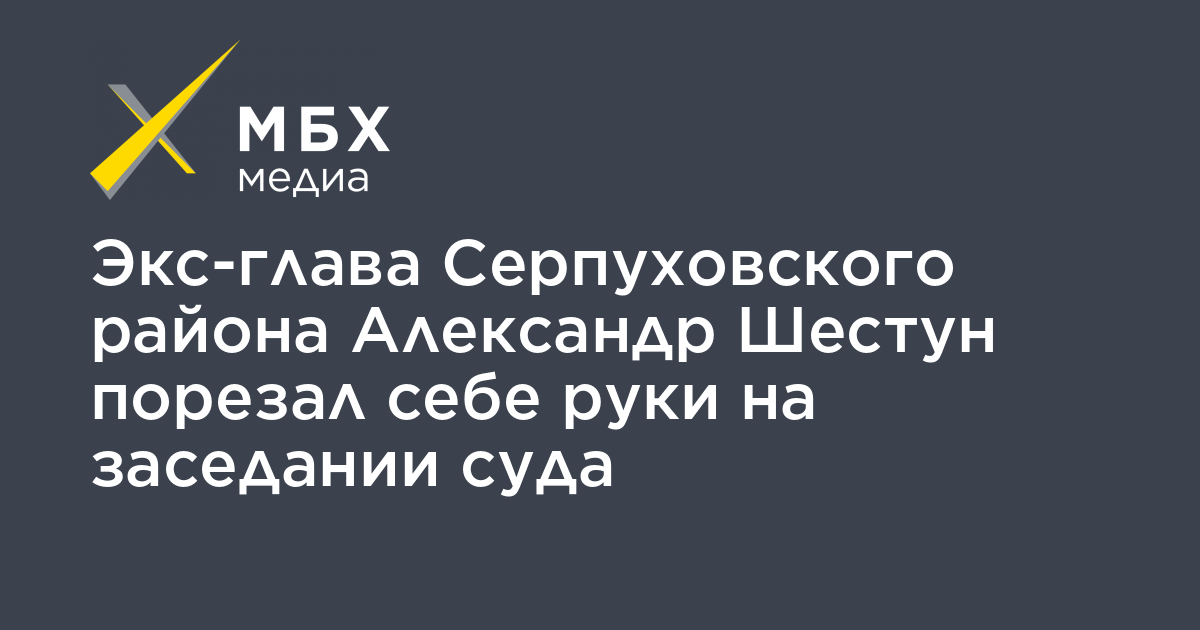 Бывший глава Серпуховского района Московской области Александр Шестун порезал себе руки во время заседании суда по его делу, сообщила «МБХ медиа» председатель общественного комитета «Свободу Шестуну» Влада Русина.