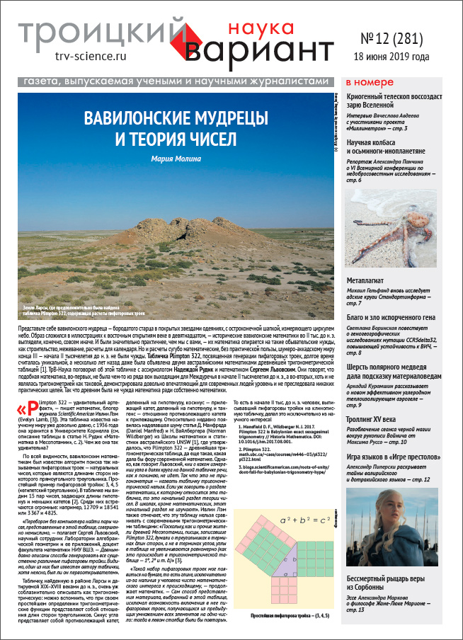 ТрВ № 12 (281) за 2019 г.: Вавилонские мудрецы и теория чисел