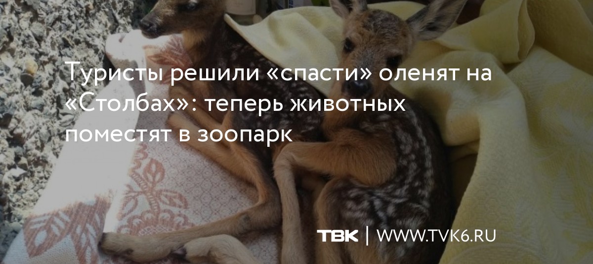 Как сообщили в пресс-службе заповедника «Столбы», оленят нашли на пешеходной тропе под Чертовым пальцем.