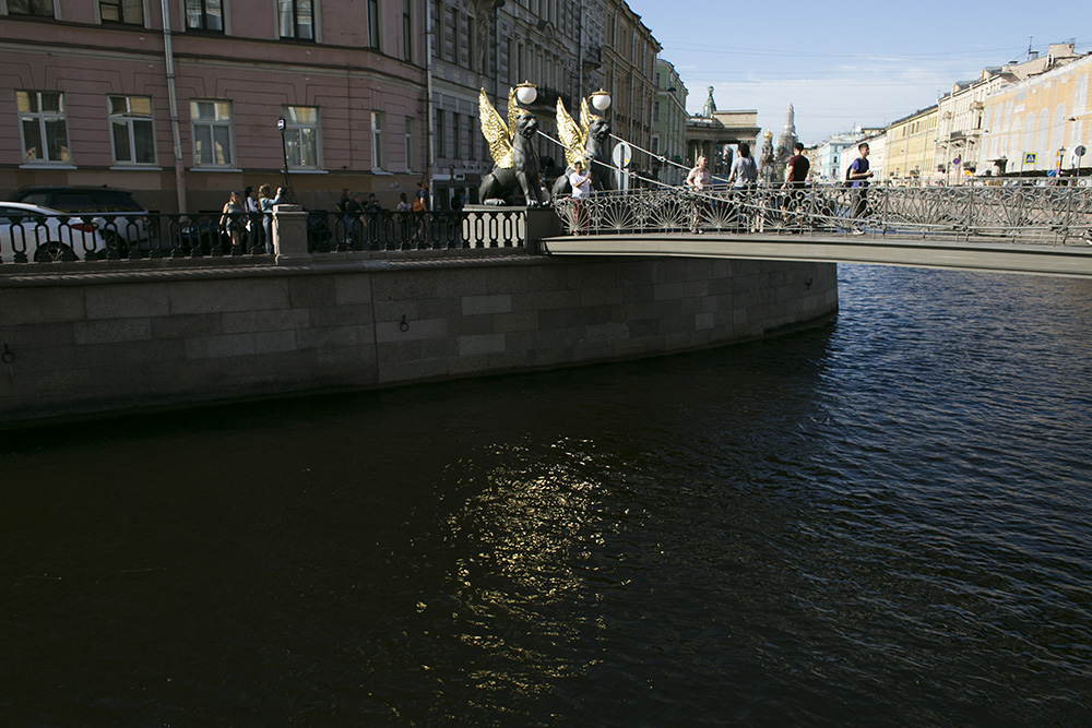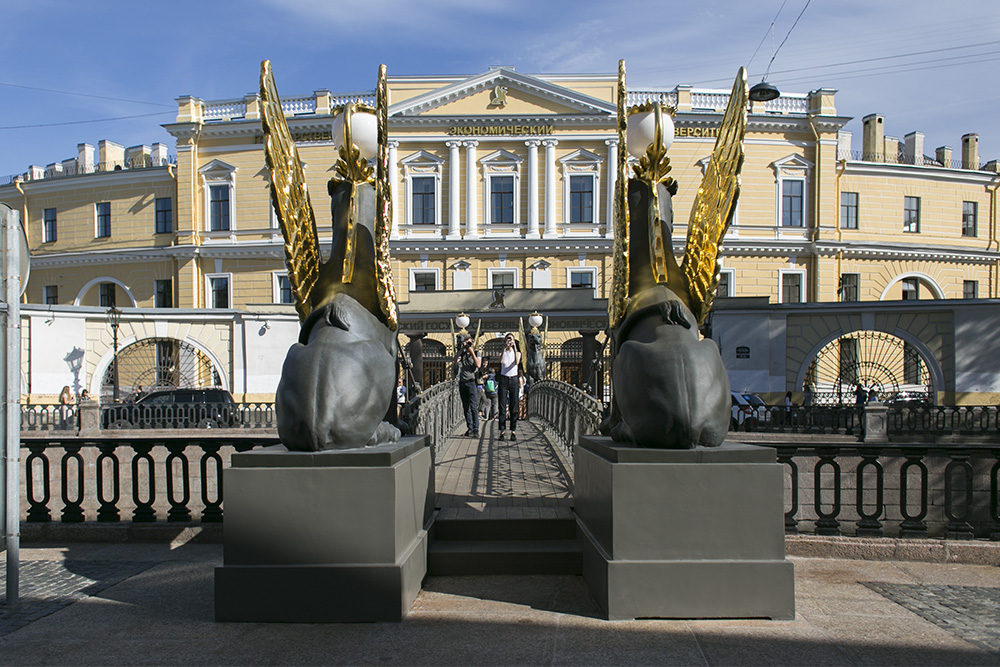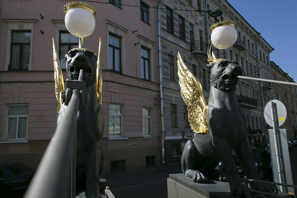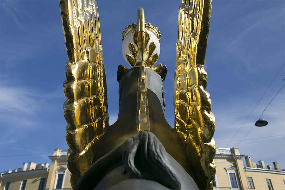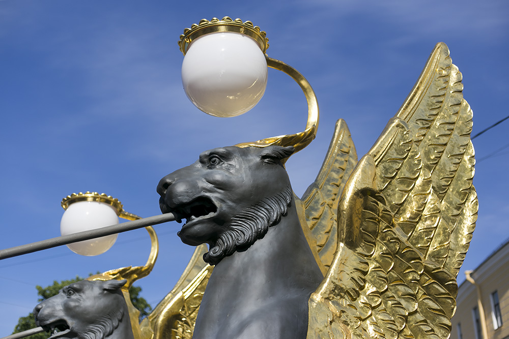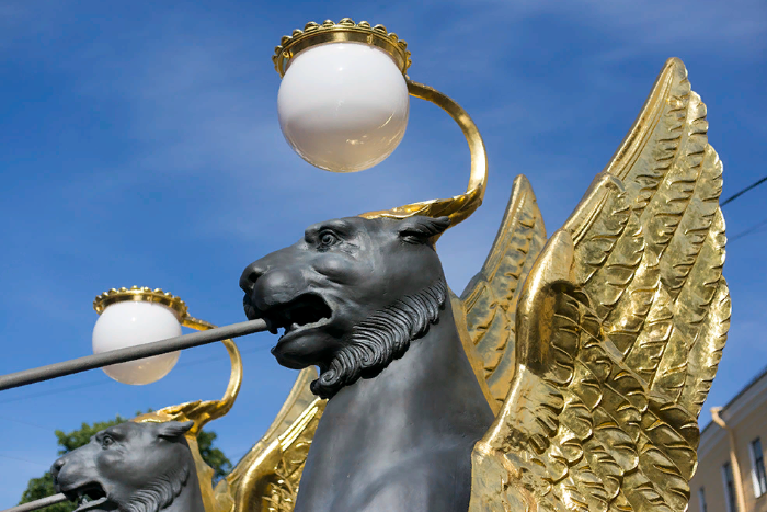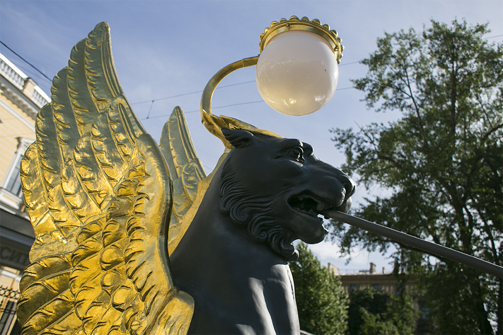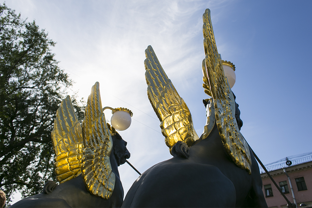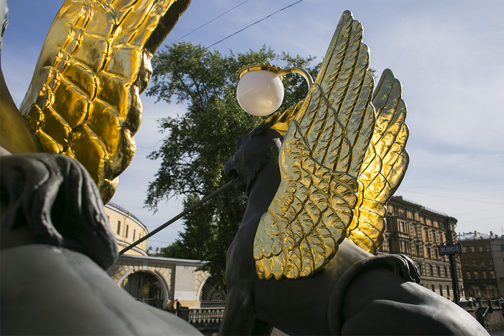 Спустя два года на Банковский мост вернули грифонов. Теперь они черные и с блестящими золотыми крыльями! 10 фотографий обновленных скульптур
