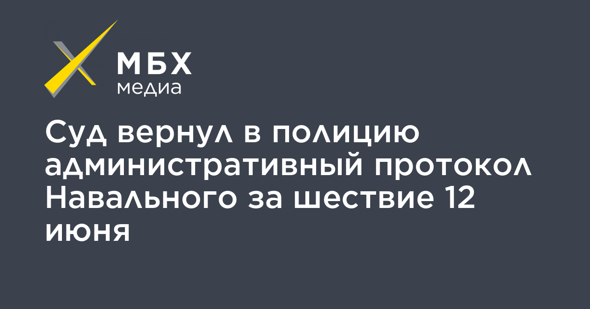 Хорошевский суд Москвы вернул в полицию административный протокол, составленный на Алексея Навального за участие в марше против фабрикации уголовных дел 12 июня. Об этом «МБХ медиа» сообщил руководитель юридического отдела ФБК Иван Жданов.