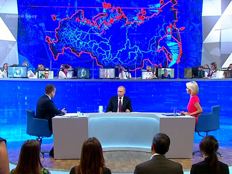 Во время "Прямой линии" работа в России замерла на четыре с лишним часа - россияне следили за его выступлением, будучи на своих рабочих местах (судя опросу ВЦИОМ, 30% собирались смотреть "Прямую линию" от начала и до конца). В этом году общение Путина с народом продолжалось 4 часа 07 минут. За это время президент успел ответить на 81 вопрос.