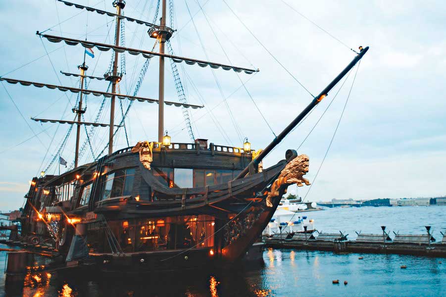 Еще один вариант — ресторан на корабле «Летучий Голландец», пришвартованном рядом с Биржевым мостом. За столом у окна будет видно Зимний дворец и акваторию Невы. Ресторан будет работать всю ночь. Забронировать стол можно при депозите от 10 тысяч рублей. Средний чек — 2800 рублей без напитков.