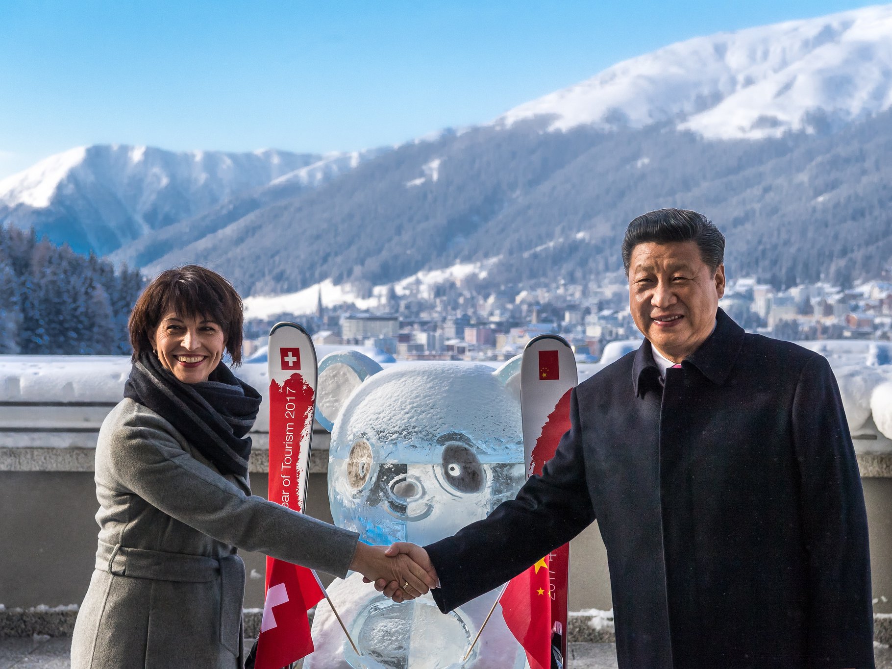 Си Цзиньпина сопровождают министр иностранных дел Ван И и супруг Пэн Лиюань.