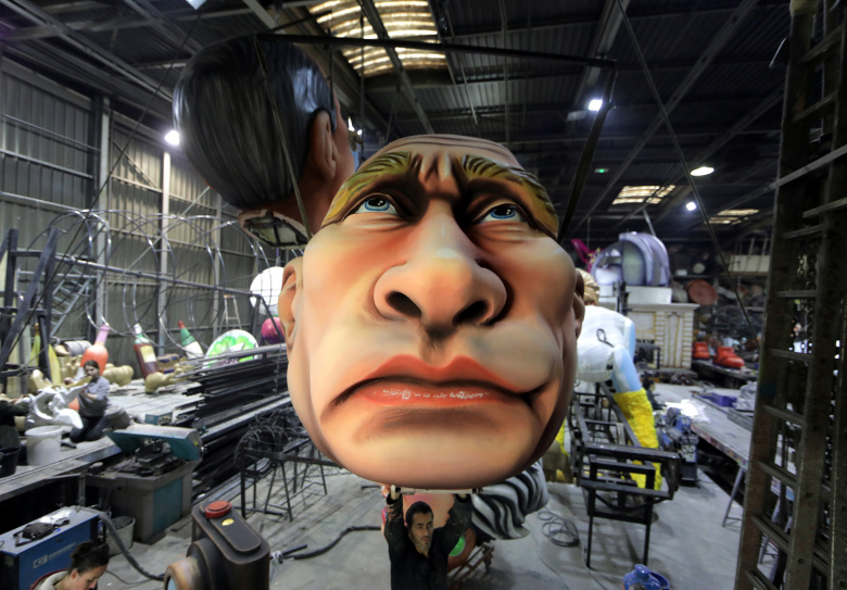 Кукла, изображающая Владимира Путина, на фабрике в Ницце. Резиновые куклы известных людей изготавливают перед парадом. Фото: Eric Gaillard / Reuters