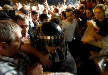 Протестующие кидали в полицейских бутылки и отнимали у них щиты. Отдельные группы демонстрантов оставались на проспекте Руставели до утра.