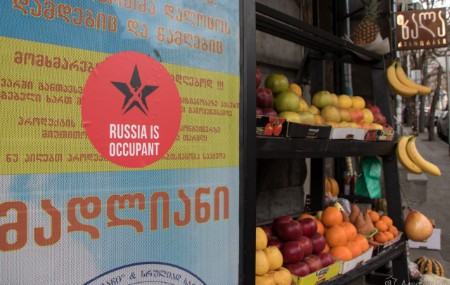 Тбилиси. Стикер "Россия - оккупант". Фото Д. Борко