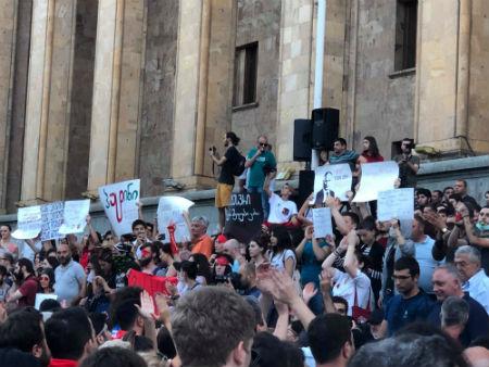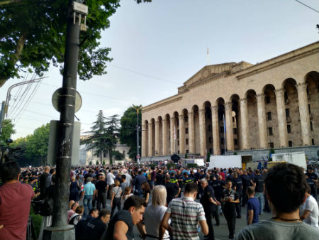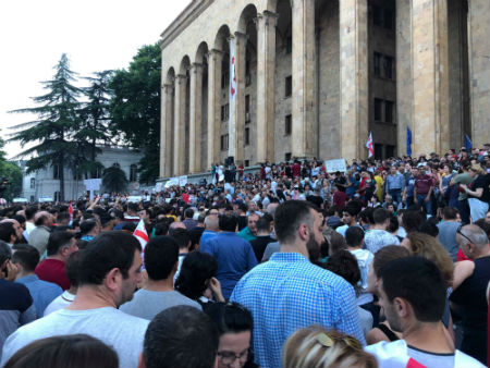 Накануне вечером акция против российской оккупации у здания парламента собрала, по разным оценкам, от 7 до 10 тысяч человек. Протестующие требовали отставки Гахария и Кобахидзе. Они дали час на выполнение своих требований, после чего стали прорываться в парламент. Силовики в ходе разгона акции применили слезоточивый газ и резиновые пули. Пострадали 270 человек, в том числе 80 полицейских. Один человек скончался в больнице.