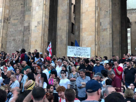Акцию спровоцировало выступление депутата Госдумы Сергея Гаврилова в парламенте Грузии на сессии Международной ассамблеи православия. В четверг утром Гаврилов открыл сессию, сидя в кресле спикера и обращаясь к делегатам по-русски. Он известен как сторонник независимости Абхазии. По данным грузинских СМИ, Гаврилов воевал в Абхазии в начале 1990-х годов; сам он это отрицает.