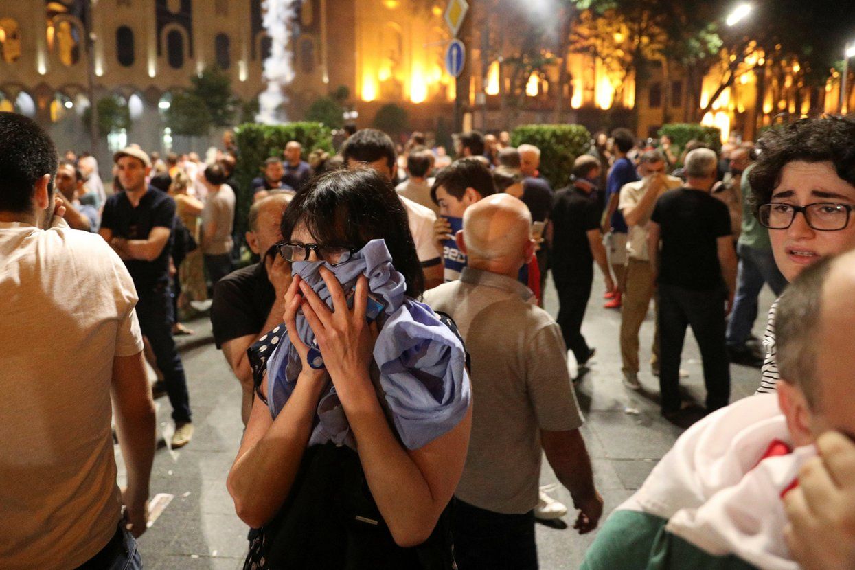 On the ground during violent clashes with police at Tbilisi’s anti-Russian protest