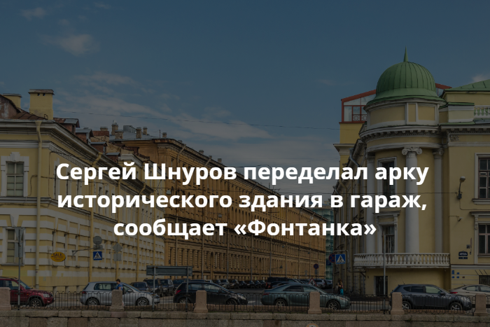 Сергей Шнуров переделал арку исторического здания в гараж, сообщает «Фонтанка»