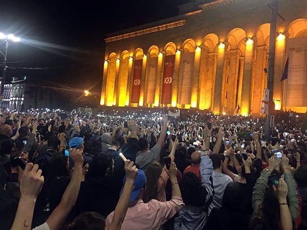 Напомним, ранее оппозиция, организовавшая протест, потребовала отставки ряда министров и спикера парламента. Их обвинили в том, что руководитель российской делегации, депутат Госдумы Сергей Гаврилов, выступая на заседании Межпарламентской ассамблеи православия, председателем которой является, занял кресло главы парламента Грузии.