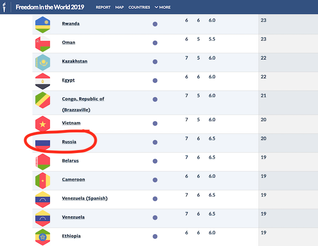 В последнем Индексе Свободы Freedom House, отражающем реализацию в разных странах и территориях политических прав и гражданских свобод, Росия делит 173–174 места из 208. У нас 20 баллов из 100 (99–100 — Финляндия, Швеция, Норвегия, Нидерланды и Канада; 0–3 — Сирия, Туркменистан, Эритрея, Северная Корея). Политические права у людей фактически отняты; минимальный уровень гражданских свобод еще сохраняется. Множество африканских и азиатских стран значительно более свободны, чем мы сейчас. С начала века Россия плавно опустилась по уровню свободы из начала седьмого дециля в середину восьмого. Еще есть куда падать, но мы уже не слишком высоко: половина дистанции от частичной свободы начала 2000-х к максимальной несвободе за эти 20 лет пройдена. Для многих это осталось незаметным, так как ухудшение было плавным и сопровождалось ростом благосостояния тех, кто стал работать на поддержку политического режима.