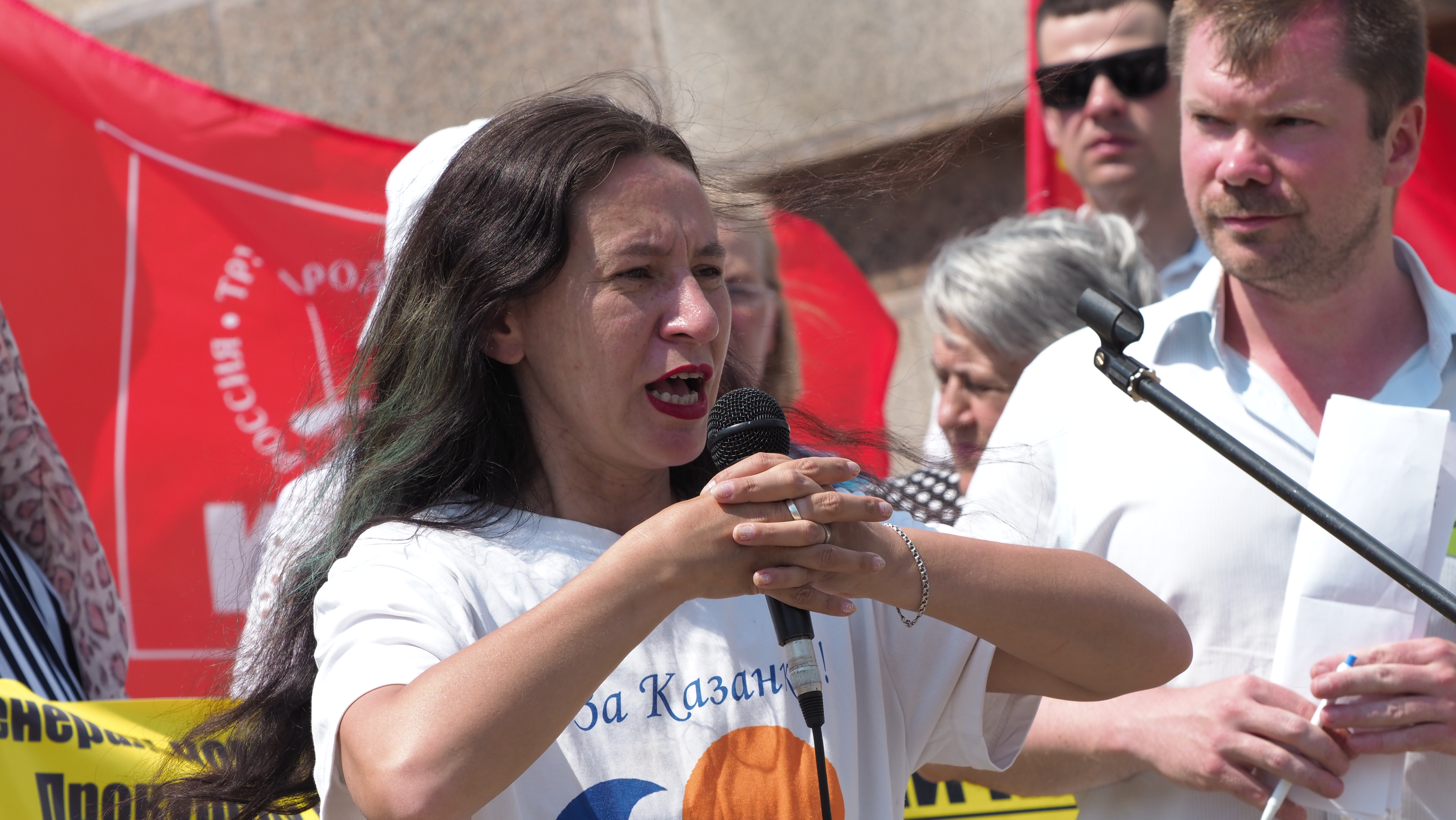 Сегодня, 23 июня, в парке Петрова состоялся третий в этом году митинг против будущего Генплана Казани, новую — третью по счёту — версию которого власти обещают представить общественности через месяц. Ораторы сменяли друг друга на протяжении полутора часов. Люди — и ораторы, и слушатели — стояли на дичайшем солнцепеке. Единственная полоска тени, отбрасываемая гранитным возвышением, могла вместить всего несколько человек.