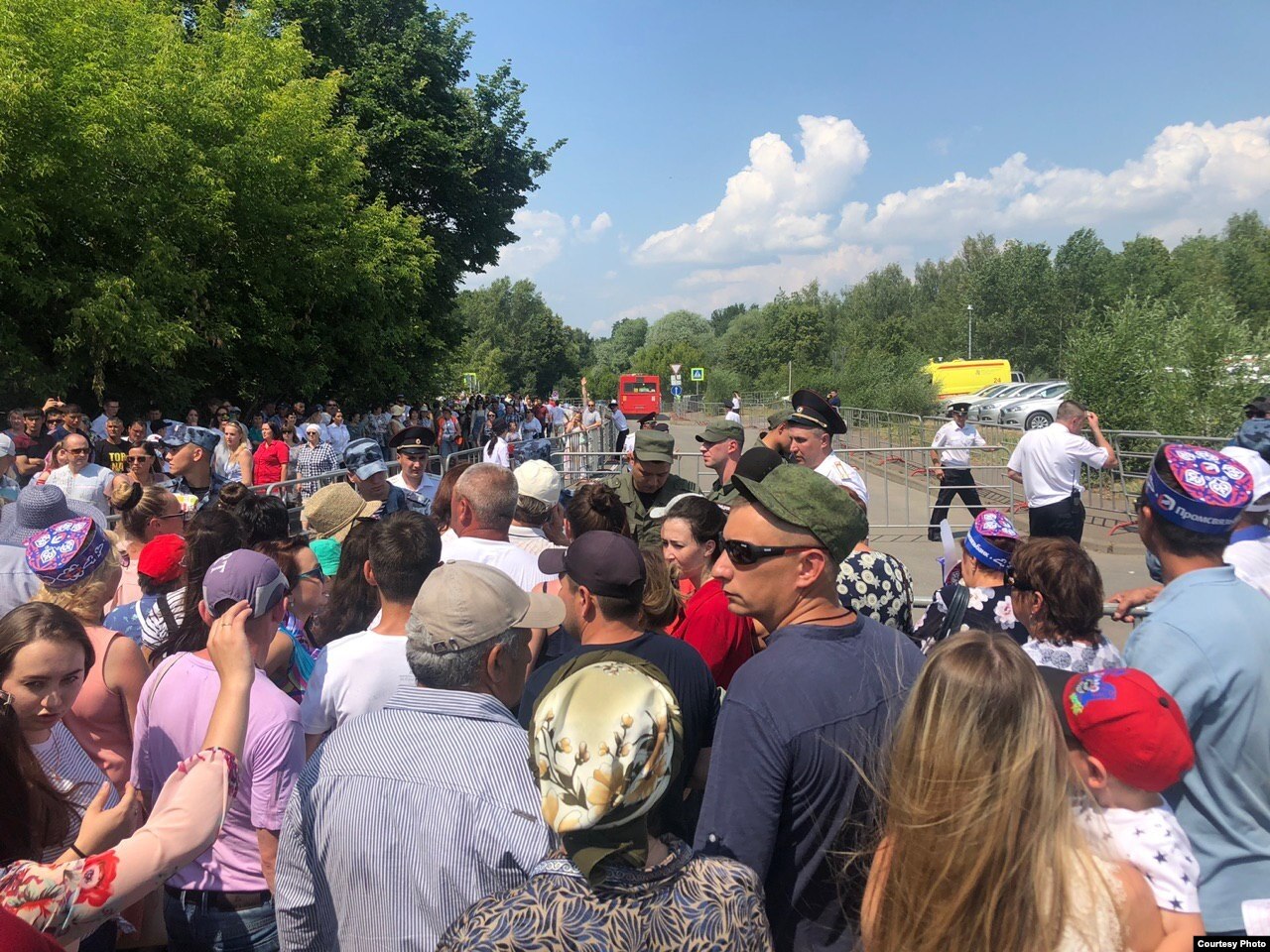 Сегодня, 23 июня, около полудня в поселке Мирный в Казани, где должен проходить ежегодный Сабантуй, образовалась давка у входа на площадку. Горожан не впускали на мероприятие, рассказал "Idel.Реалии" присутствующий на месте житель Казани.