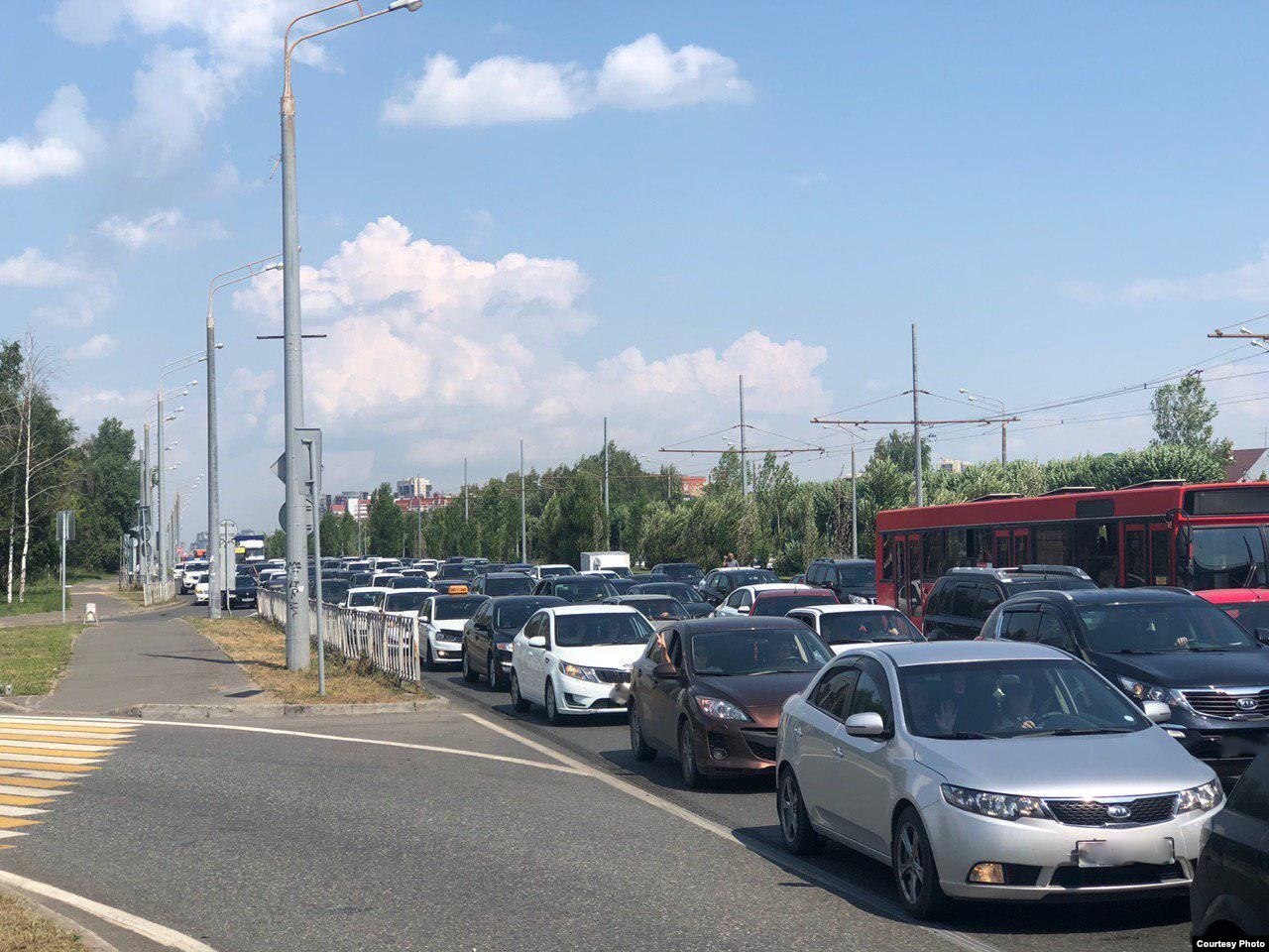 Кроме того на дорогах, ведущих к месту проведения Сабантуя, скопились машины. Сервис "Яндекс.Пробки" говорит о заторах на Оренбургском тракте, улицах Баки Урманче и Рауиса Гареева. Очевидцы сообщают "Idel.Реалии", что пробки растянулись от кольца Универсиады и до самого поселка Мирный.