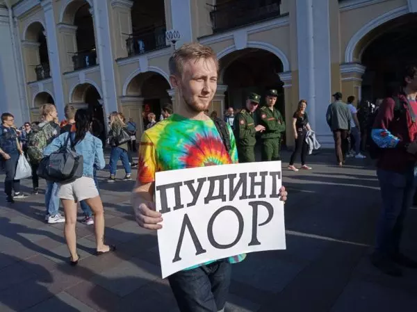 Молодой человек стоял с плакатом, на котором было написано «Пудинг лор». Плакат не понравился сотрудникам полиции и активиста жестко задержали.