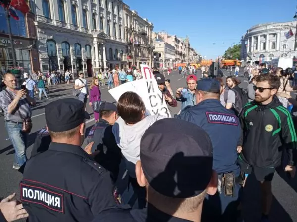 Вот как проходит несогласованная акция в Петербурге, пока там задержаны два человека.