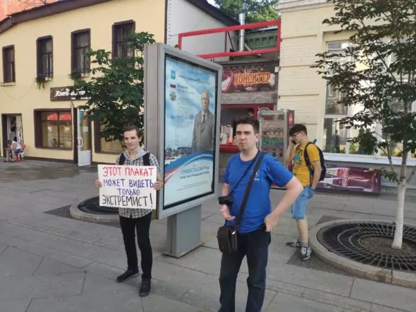 «Меня задержали в палатке. Организаторы митинга были не против плаката «Путин — вор», они считали, что это их компетенция допускать. Задержали сотрудники полиции, отвели к автозаку, продержали 20 минут и вывели за рамки. Сказали, что с таким плакатом я не пройду», — рассказал он.