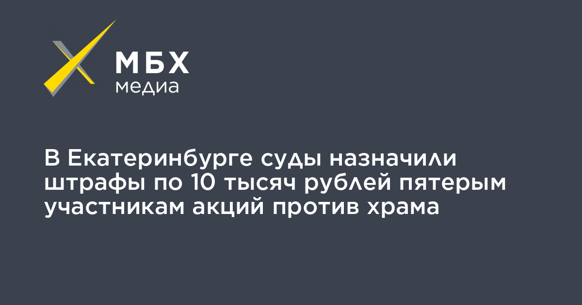 В Екатеринбурге суды назначили штрафы по 10 тысяч рублей пятерым участникам акций против храма