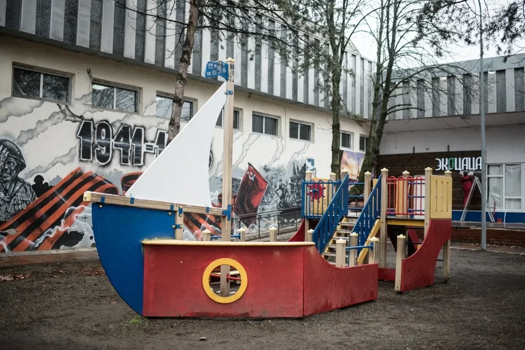 В центре город сам немного походит на пеструю обертку от пломбира: каркасно-монолитные трехэтажки, яркие вывески, высокие заборы. Пейзаж изредка нарушает внезапное появление загадочных объектов вроде ледового дворца и застывшего на постаменте вертолета. Впрочем, ничего удивительного — близ Кореновска на военном аэродроме дислоцируется 55-й вертолетный полк.